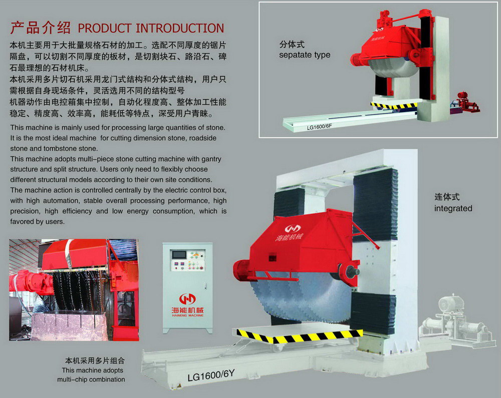 Esta máquina se utiliza principalmente para el procesamiento de piedra de gran tamaño. Opcional con diferentes espesores de sierra tipo split